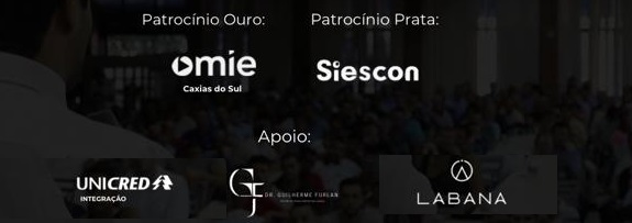 O encontro conta com o patrocínio ouro da Omie, patrocínio prata da Siescon Sistemas e apoio da Unicred Integração, Guilherme Furlan Odontologia Especializada e Labana.