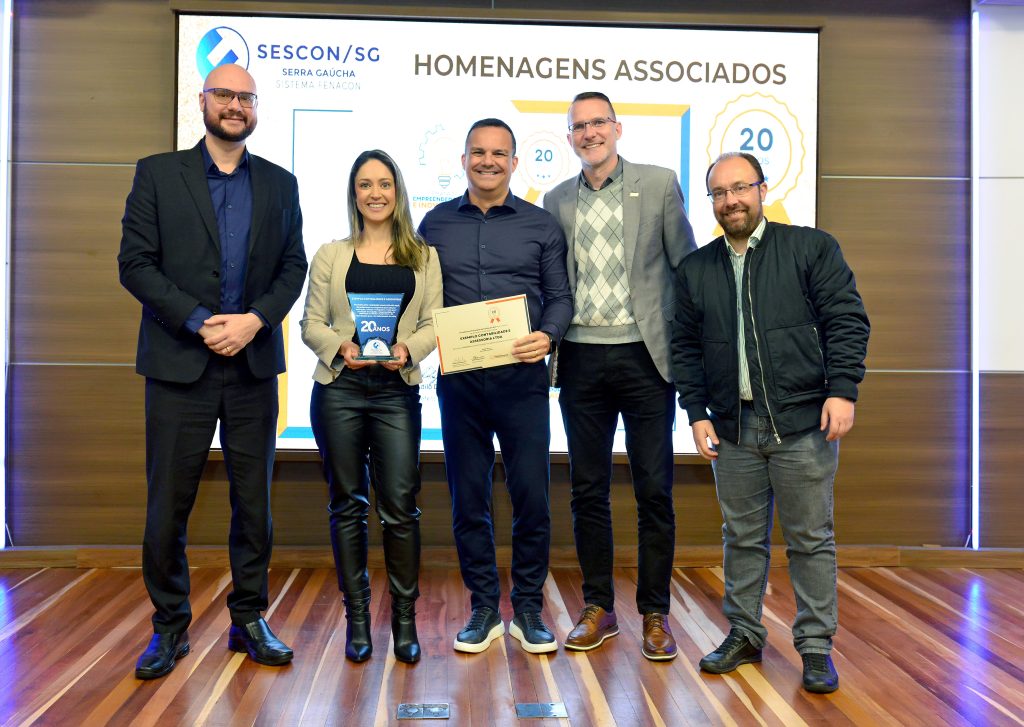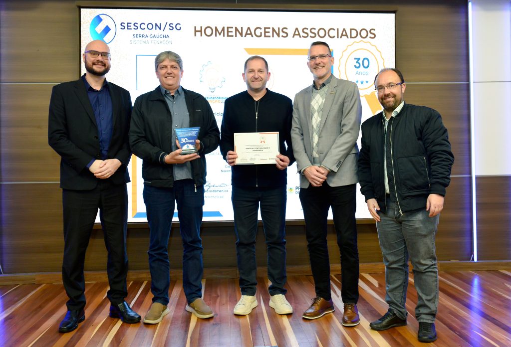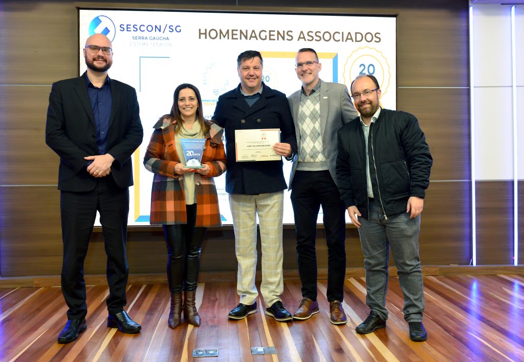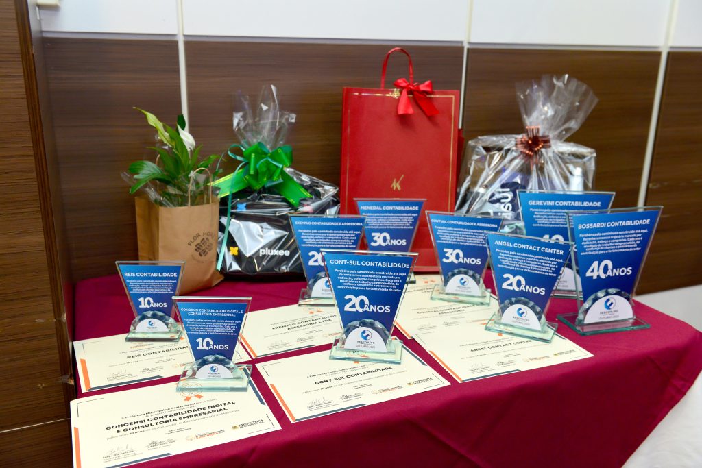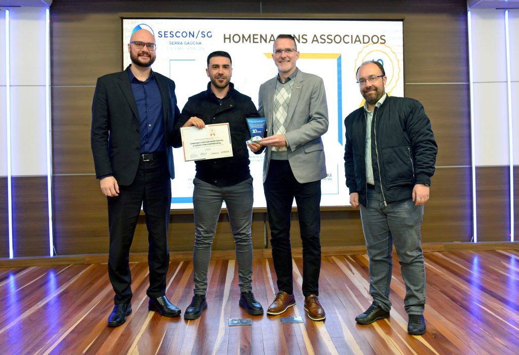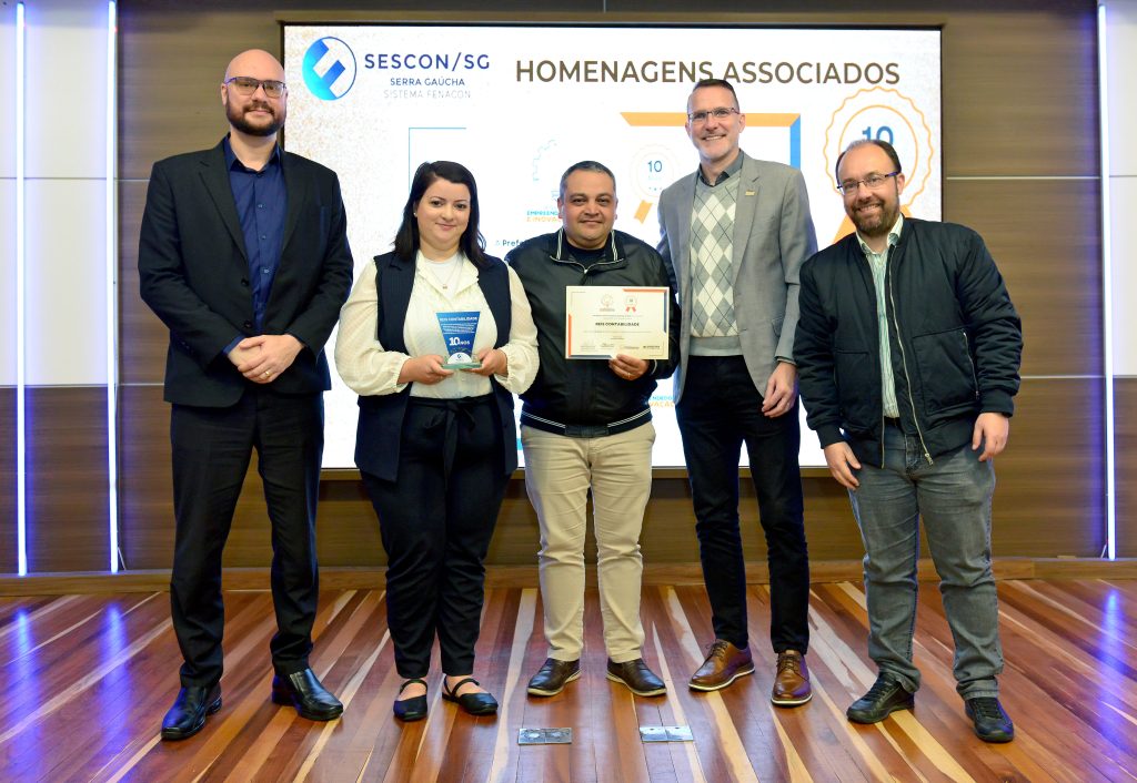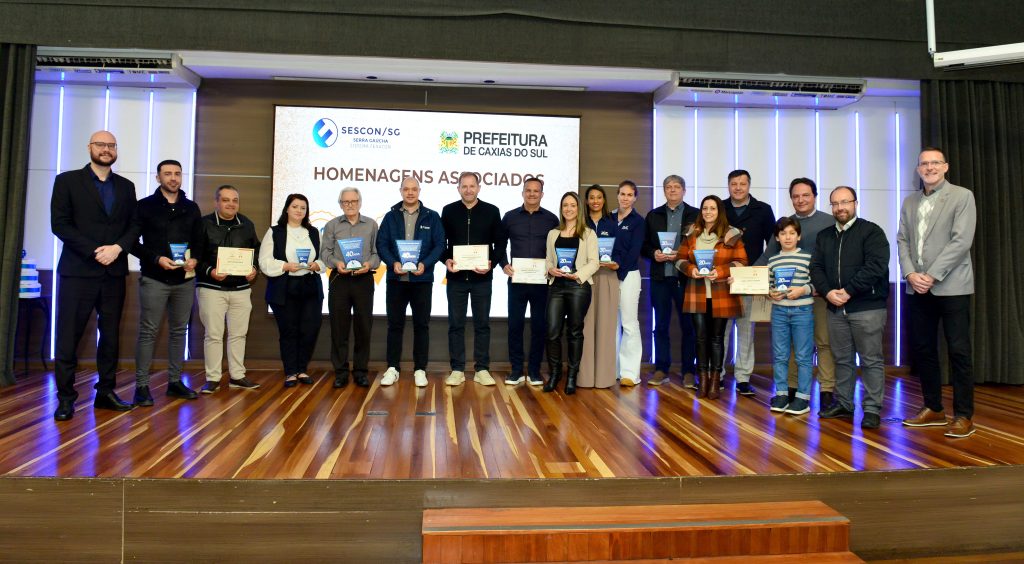 Seguindo a celebração foram entregues as homenagens de reconhecimento da Prefeitura de Caxias do Sul, por meio da Secretaria Municipal do Turismo e Desenvolvimento Econômico em parceria com o Sescon-Serra Gaúcha. Uma iniciativa que nasceu em 2009 com o objetivo de prestar reconhecimento às empresas ligadas aos sindicatos e associações, que completam a partir de 10 anos de atividades junto à comunidade caxiense
