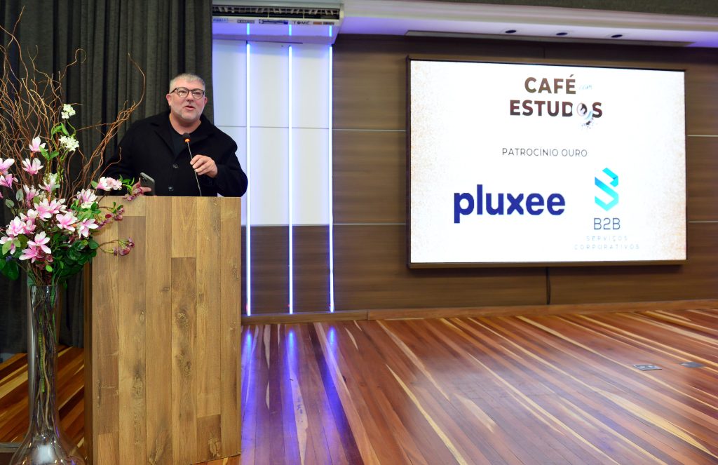 Seguindo o evento o executivo comercial região sul da PLUXEE BENEFÍCIOS o Sr. ValmorJúnior saudou os presentes e explanou um pouco sobre a empresa e quais os benefícios para os associados do Sescon.