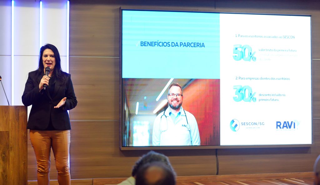 Para reforçar a parceria que temos com a Ravi Saúde Corporativa a coordenadora comercial Fernanda Onzi também fez breve explanação.