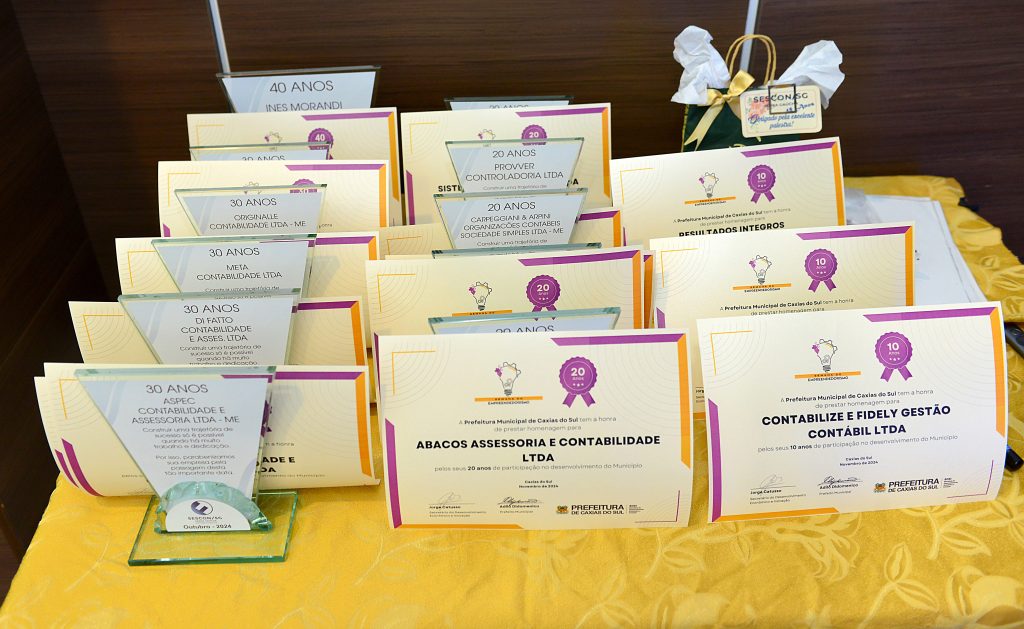 Seguindo a celebração e continuando as comemorações foram feitas as homenagens de reconhecimento da prefeitura de caxias do sul, por meio da Secretaria Municipal do Desenvolvimento Econômico e Inovação em parceria com nossa entidade, as empresas associadas que completam este ano data fechada de fundação, 10, 20, 30 e 40 anos.