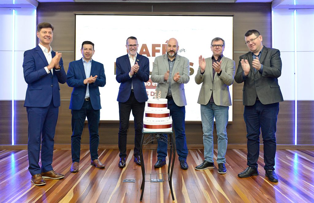 E para reforçar estes 48 anos os ex-presidentes presentes no café subiram ao palco para juntos com o atual presidente cantar parabéns a entidade.