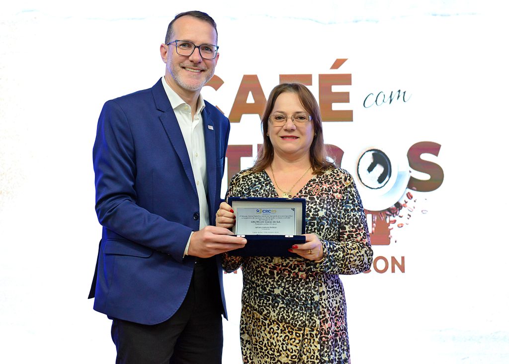 Aproveitando este momento comemorativo também prestamos uma justa homenagem a delegacia do CRCRS em Caxias do Sul que este ano completa 25 anos, entregando uma placa a Delegada Beatriz Caregnato da Silva.
