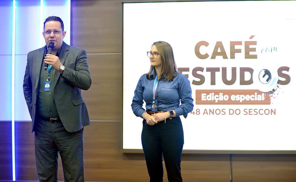 Seguindo o evento o superintendente regional Rodrigo Guzen e a gerente comercial Tais Rosa do Banrisul, parceiro patrocinador deste evento falaram um pouco sobre os serviços e produtos do banco com benefícios aos escritórios de contabilidade, sorteando ao final da fala um kit a um dos nossos participantes.