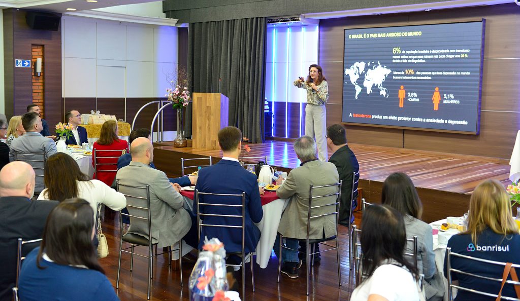 A palestra da manhã com a psicóloga Dra. Luciane Farina Fochesatto trouxe um tema muito relevante, a sustentabilidade emocional – o papel do lider na saúde mental de seus colaboradores. O estado de bem-estar mental e emocional de um colaborador no ambiente profissional envolve a capacidade de lidar com as pressões do trabalho, equilibrando-as com as questões pessoais e externas, e de forma saudável, com as relações com colegas e lideranças.