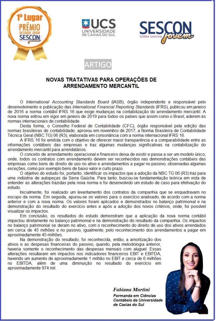 Fabiana Martini com o artigo ” NOVAS TRATATIVAS PARA OPERAÇÕES DE ARRENDAMENTO MERCANTIL”
