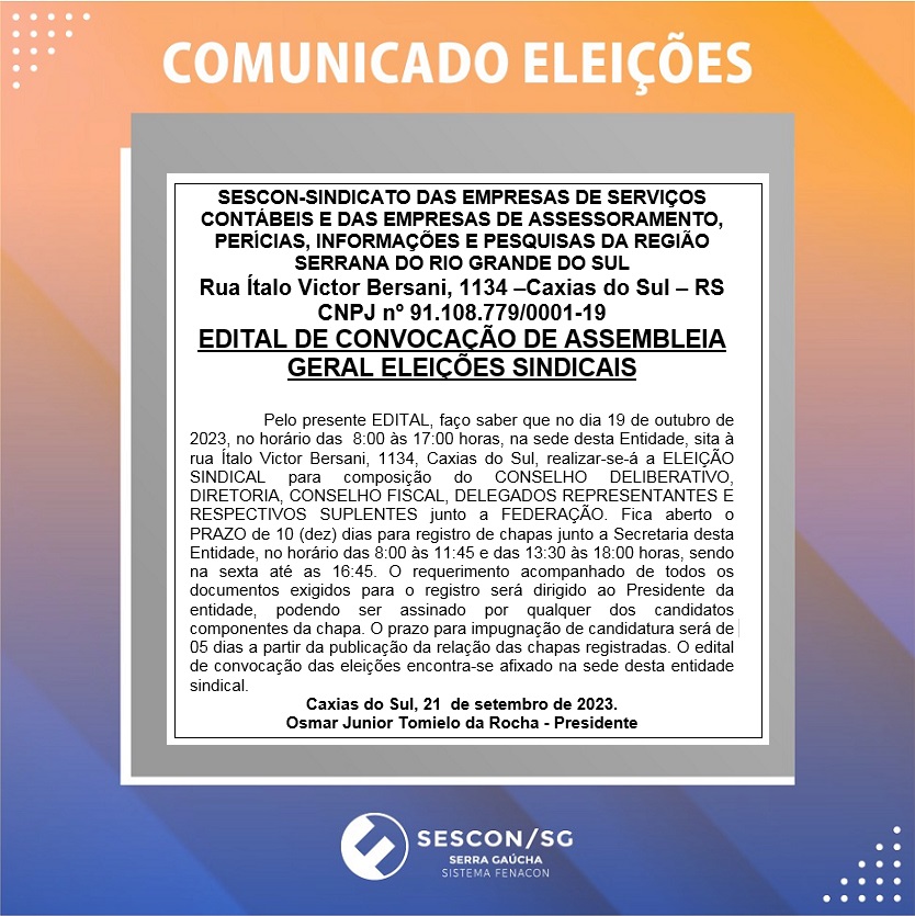 CONVOCAÇÃO ASSEMBLEIA GERAL – ELEIÇÕES SINDICAIS