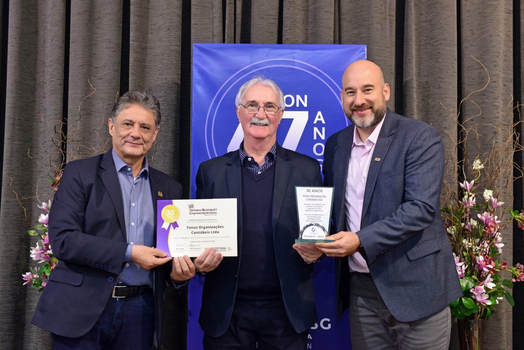 Este ano 10 empresas associadas receberam das mãos do presidente Osmar Junior Tomielo da Rocha e do Secretario da Receita Municipal Roneide Dorneles o certificado e troféu de reconhecimento, são elas: