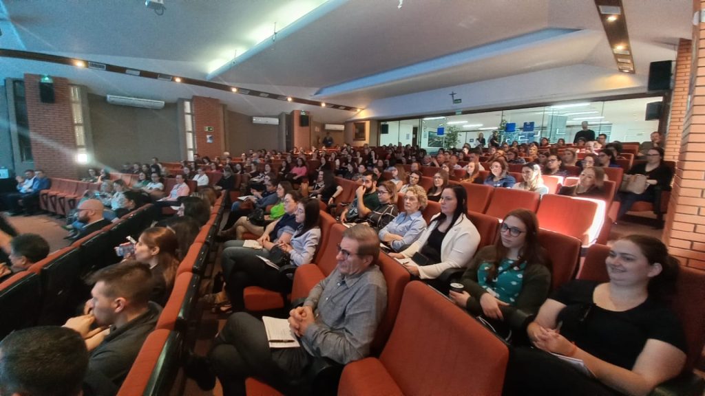 Na oportunidade, 240 pessoas ouviram foram recepcionas pela auditora fiscal do município Rejane Pereira que abriu o evento, seguida das boas vindas do presidente do Sescon Serra Gaúcha Osmar Junior Tomielo da Rocha e do Prefeito de Caxias do Sul Adiló Didomenico.