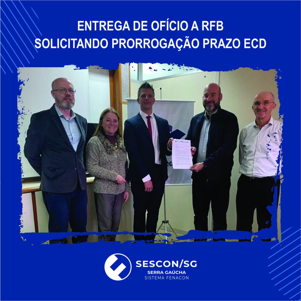 Na tarde do dia 16 de maio, o presidente Osmar Junior Tomielo da Rocha, juntamente com o presidente do SINCONTEC Rudinei Viganó e da Delegada do CRCRS em Caxias do Sul Beatriz Caregnato da Silva entregaram ao Delegado da Receita Federal do Brasil em Caxias do Sul – Leandro Tessaro Ramos, ofício apresentando considerações frente a não prorrogação do prazo para entrega da ECD, bem como solicitando a reconsideração por parte da RFB. Na oportunidade também estava presente o auditor fiscal Valmor Lazzari.