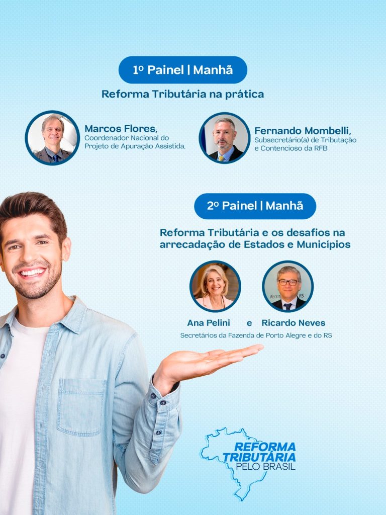 O primeiro seminário já tem data e local definidos: será no dia 09 de julho, no Teatro CIEE, em Porto Alegre (RS). A entrada será mediante a doação de 2 kg de alimento não perecível. A expectativa é atrair um público diverso e engajado, disposto a compreender com profundidade os efeitos da Reforma Tributária no cotidiano das empresas e da população.